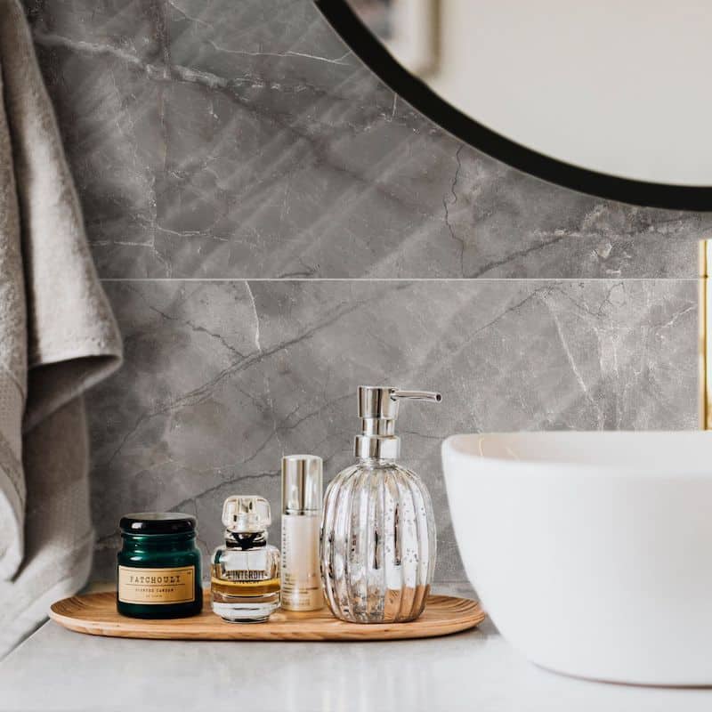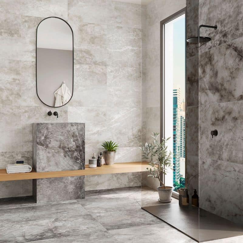 A luxurious grey marble-look tile in a striking large format for wow-factor style.