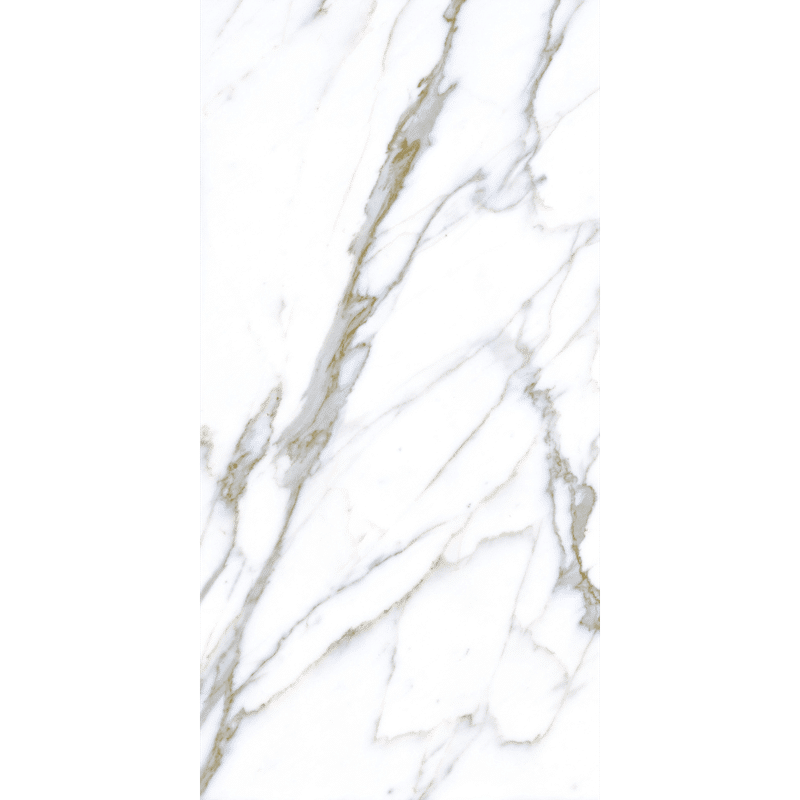 An elegant choice for homes with a designer feel, these stunning polished white marble-look tiles give you a luxurious look at a fraction of the cost of the real thing. With grey and golden veining, to mimic Statuario marble, they will complete the look with almost any interior decor.